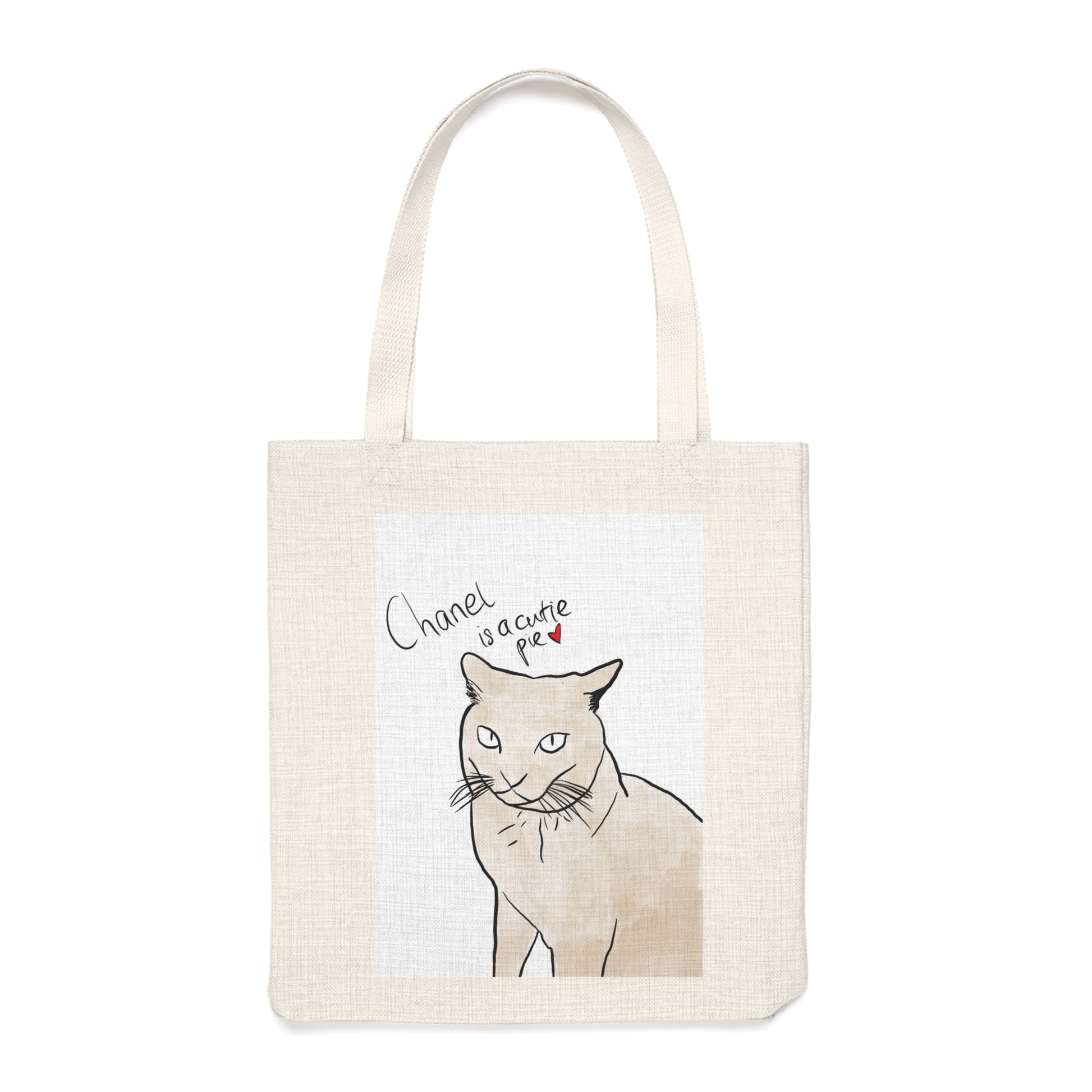 A design based on a photo of my cat Chanel sitting regally, watching. Chanel is a "Cutie Pie" artwork is now available on a large lightweight tote bag. Designed by Tasmanian Artist Jaya Palmer