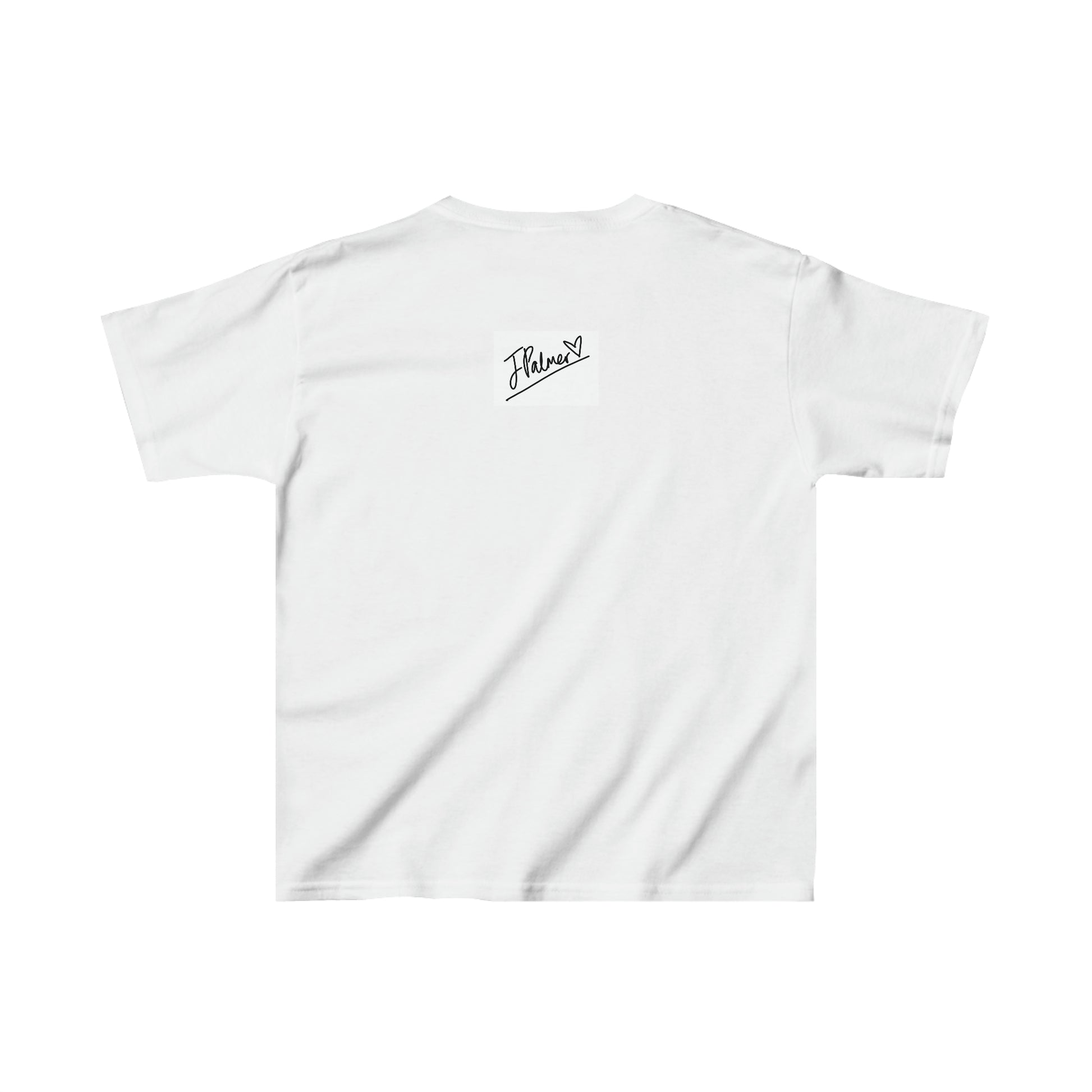 The kids heavy cotton tee is perfect for everyday use. The fabric is 100% cotton for solid colors. Polyester is included for heather-color variants. These fabrics are prime materials for printing. The shoulders have twill tape for improved durability. The collar is curl resistant due to ribbed knitting. There are no seams along the sides.