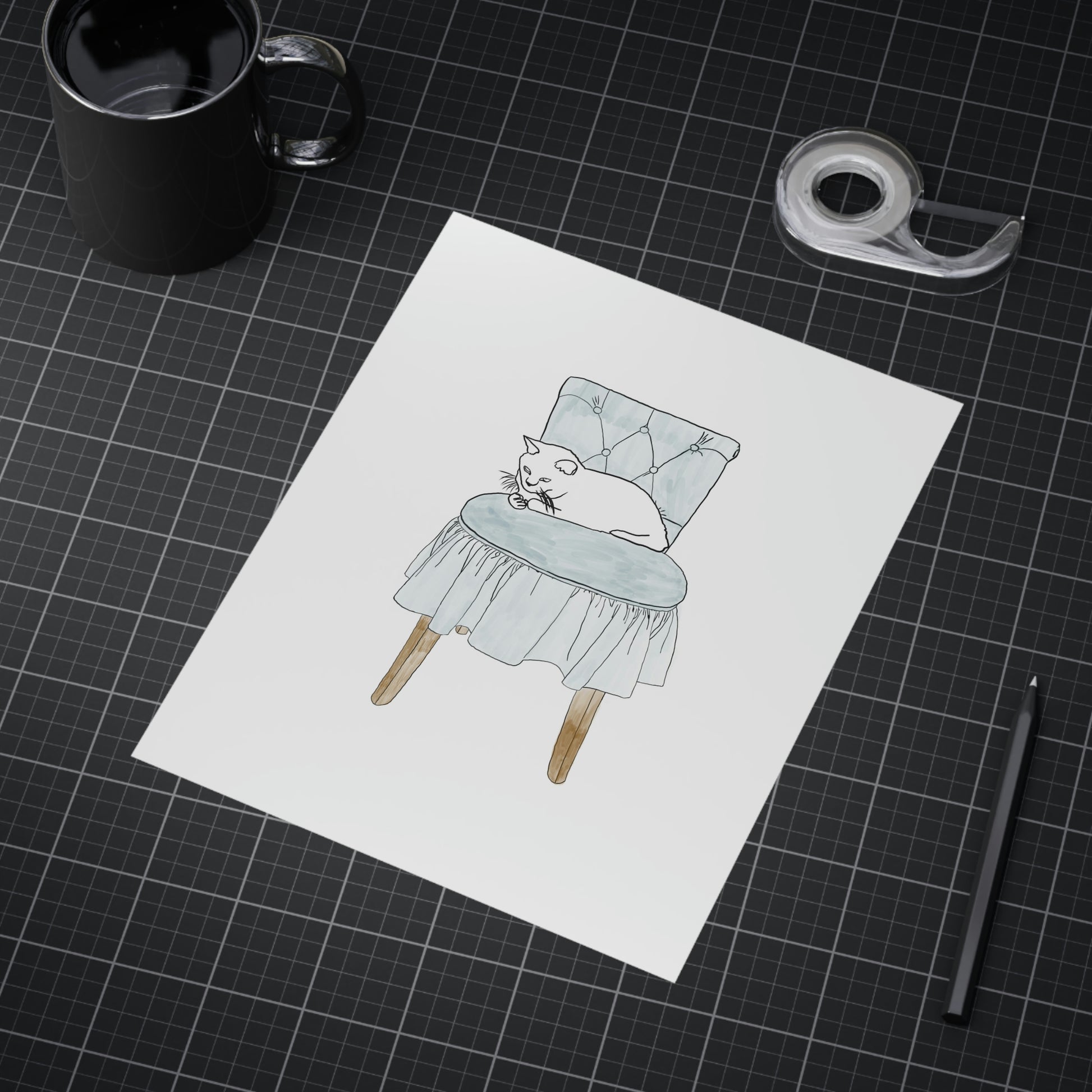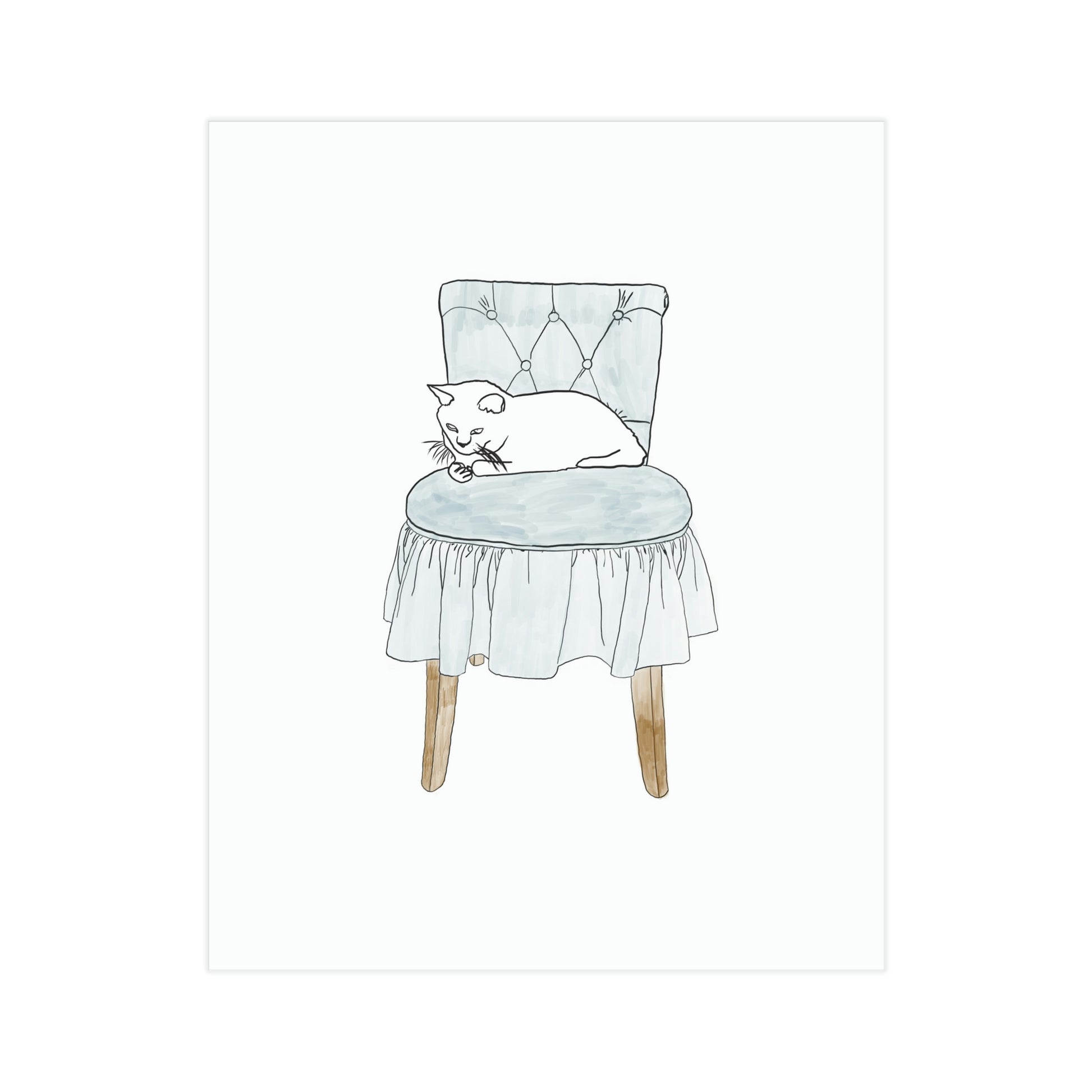 Chanel loves finding the most luxurious places to relax, especially if there's sunshine. 'In the Boudoir' artwork is available in as staple cotton tee, unisex and in a variety of sizes. This poster of my cat Chanel is designed by Tasmanian artist Jaya Palmer.